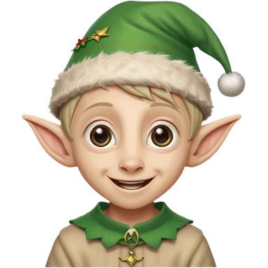 dobby the house elf from harry potter smiling and wearing a christmas elf hat emoji