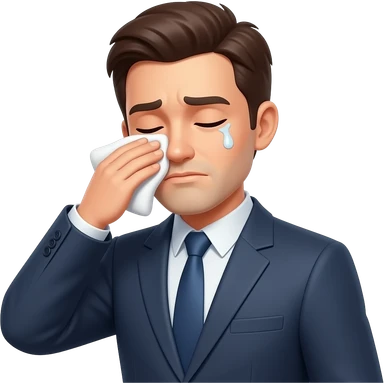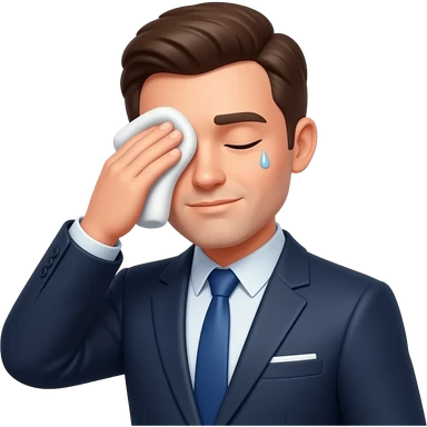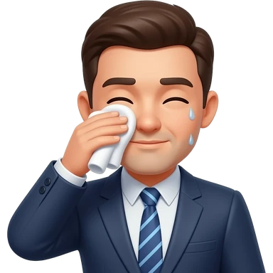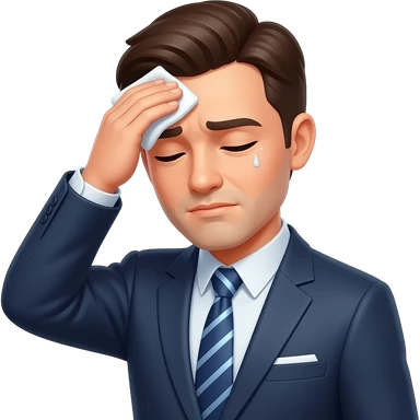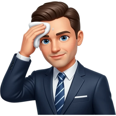 Hombre con traje,exausto, tranquilo,secándose el sudor emoji