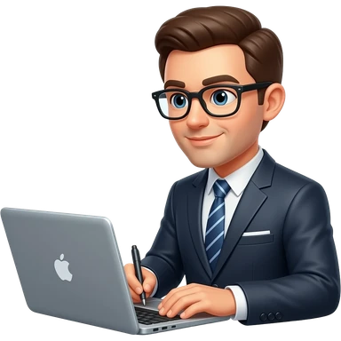 hombre con traje,,sentado,reposandose en su escritorio,simple emoji