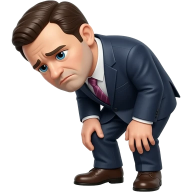 hombre con traje,exausto,sentado,reposandose en su escritorio,primer plano emoji