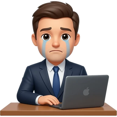 hombre con traje,exausto,sentado,reposandose en su escritorio,con laptop,primer plano emoji