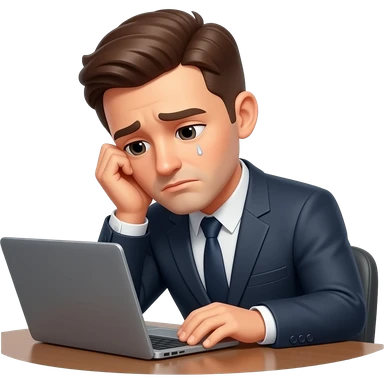 hombre con traje,muy cansado en su escritorio,simple emoji