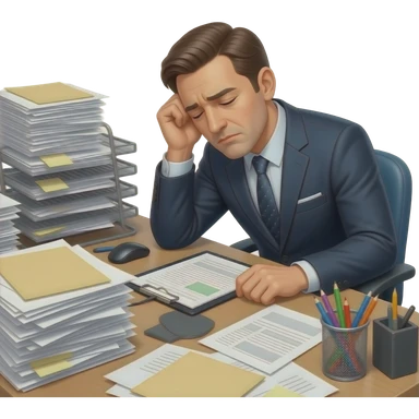 hombre con traje,CANSADO,sentado,reposandose en su escritorio,simple emoji