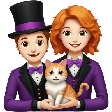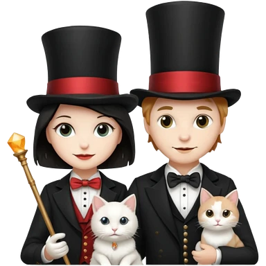magician couple and their pet cat emoji