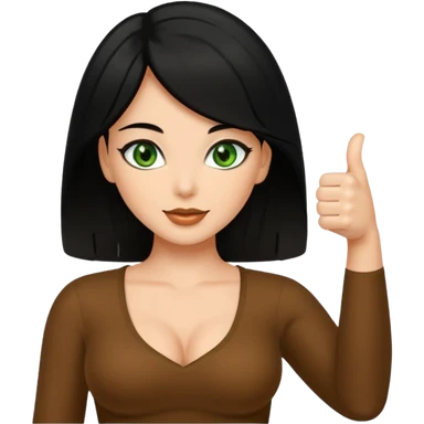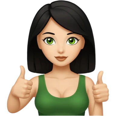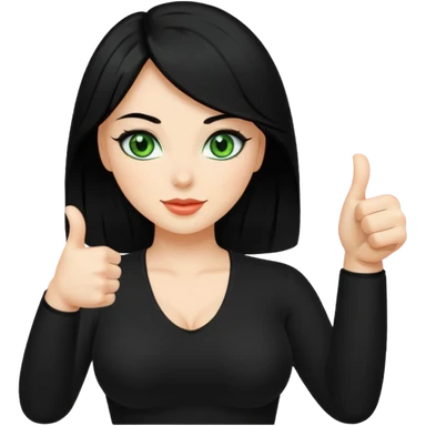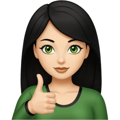Sexy lady with black hair and green eyes thumbs up black emoji