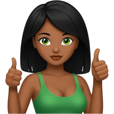 Sexy b lady with black hair and green eyes thumbs up black and brown skin emoji