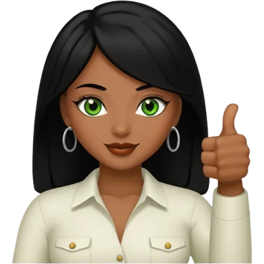 Sexy brown lady with black hair and green eyes thumbs up black emoji
