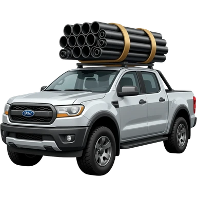 Ford Pick up truck with racking with a bundle of black pipe strapped on emoji