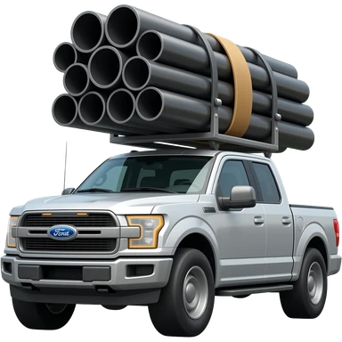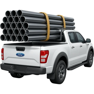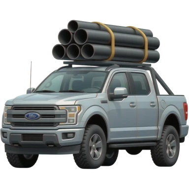 Fancy Ford Pick up truck with racking with a bundle of black pipe strapped on emoji