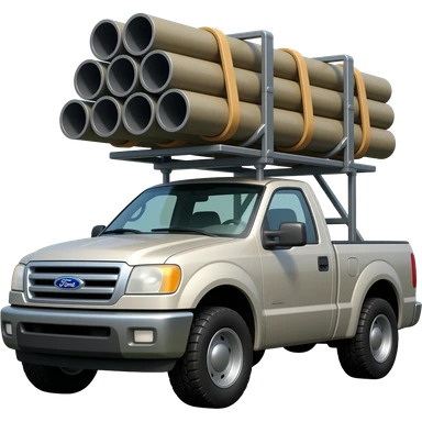 Ford Pick up truck with racking with a bundle of pipe strapped on emoji