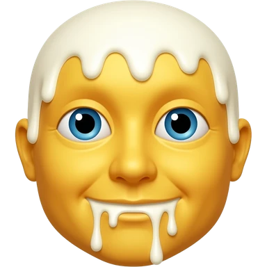 Yellow face emoji with yogurt all over it and in its mouth emoji