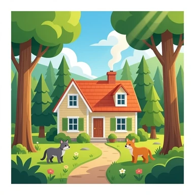 hazme una casa grande y acojedora en medio del bosque donde hayan animales y que toca la luz del sol emoji