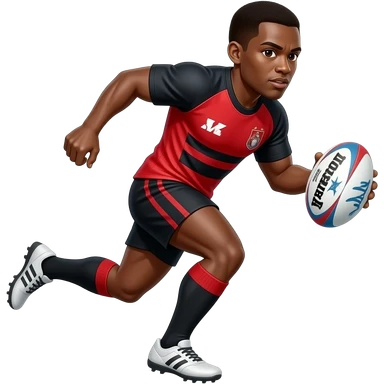 Joueur de rugby africain courant avec balle maillot rouge et noir emoji
