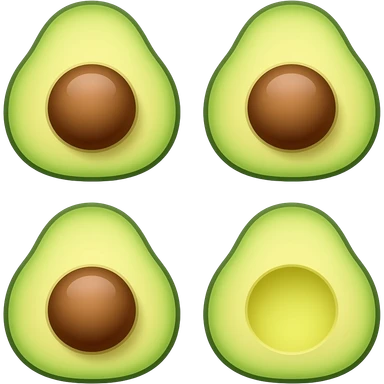 Create 4 avocado emojis, 3 with a seed and 1 without. emoji