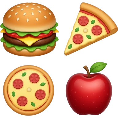 Create 4 pizza emoji-style images in a grid, where 3 pizzas are identical and 1 pizza has one slice missing, keeping all other details the same. emoji