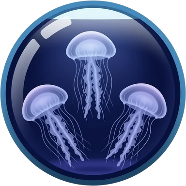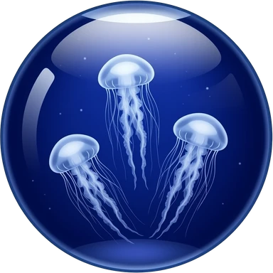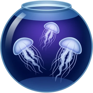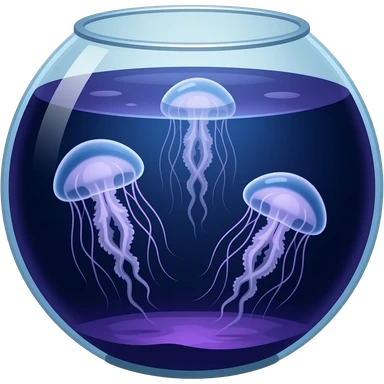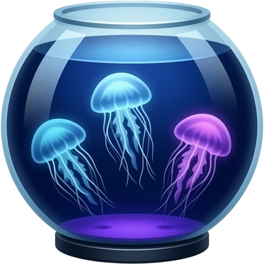 Big three jellyfish in a completely round aquarium swimming blue purple Colors light (dark water) emoji