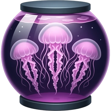 Big three jellyfish in a completely round aquarium swimming pink purple Colors light (dark water) emoji