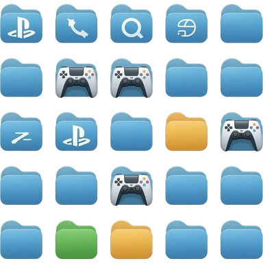 icone avec a l interieur des icone de jeu gta call off duty et dragon ball z et une mannette ps5 devant emoji