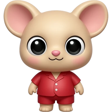 mickey mouse 3D emoji style original character, cute small creature with rounded ears, red outfit, glossy texture, soft shadows, Apple style emoji, minimalistic face, adorable and friendly emoji