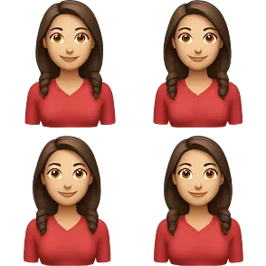 classic woman emoji light to medium skin, straight dark brown hair red shirt emoji