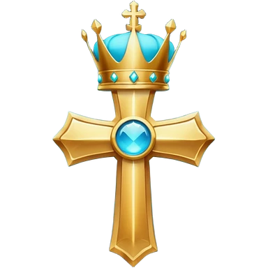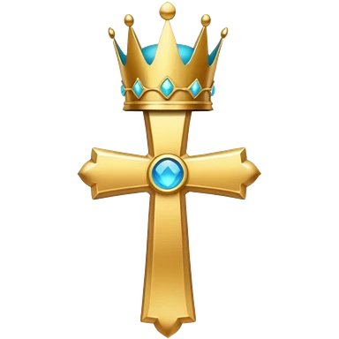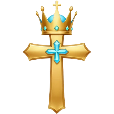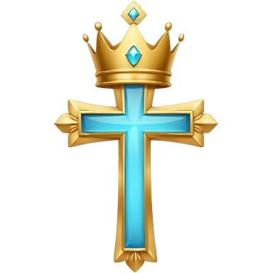 a golden, glowing cross with a cyan crown on top of it, with no background emoji