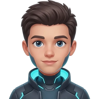 generate a emoji of my cofounder AI Agent figure, young genius, adorable, smart, sharp, clean, minimalistic cyberpunk, JARVIS emoji