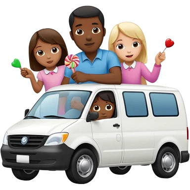 A black man forcing 3 little girls into a white van with candy emoji
