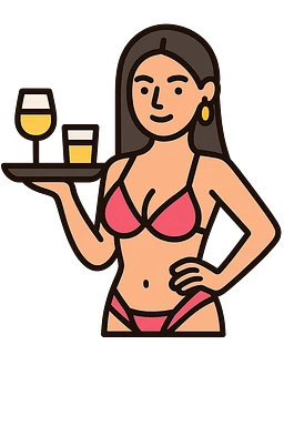 icon of a sexy bar girl serving drinks, stylish, confident, playful, modern icon design, clean lines, minimalistic color outlined style emoji