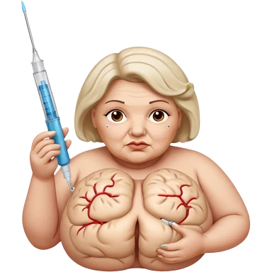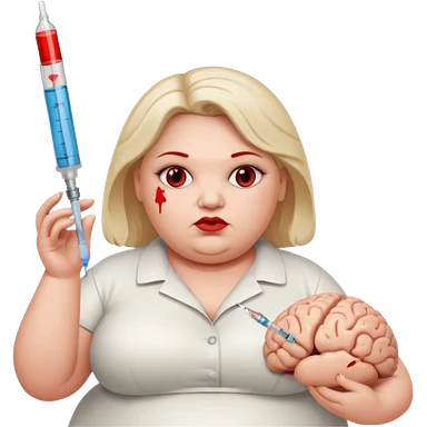 비만 여자 뇌보이고 주사 들고있는 emoji