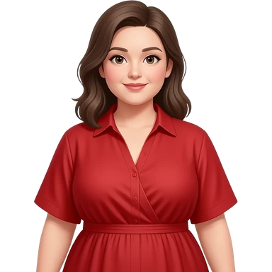 can you make her a little bit bigger and replace the red shirt for a v line red loose dress shirt that is tight in the middle? emoji