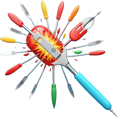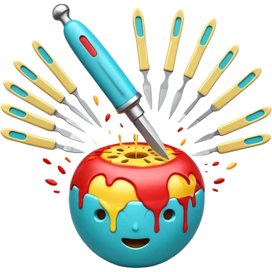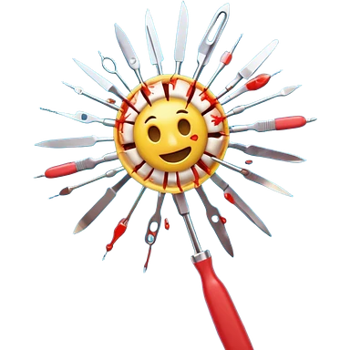 A hyper-realistic surgical scalpel exploding into a vibrant burst of medical and emotional emoji (π©Ίππ§¬π«π€π΅β¨). Dynamic composition, emoji art style, 3D render, Pop Art. Shallow depth of field, studio lighting, clean pastel background. --ar 16:9 emoji