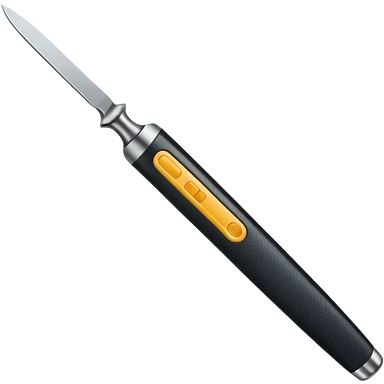 A highly detailed, realistic surgical scalpel with a polished stainless steel blade and a textured grip. emoji