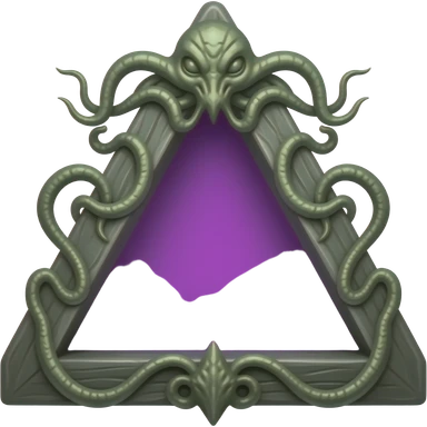 wooden triangle spooky frame, lovecraftian style , inside void pourple - wooden frame green-grey-brown emoji