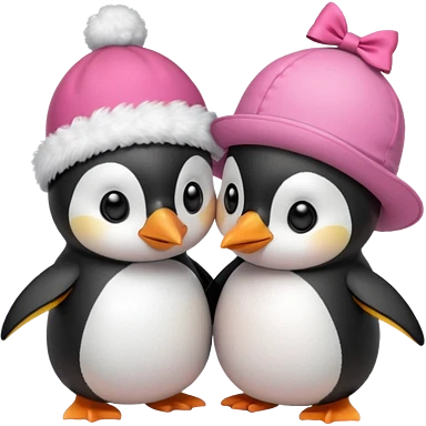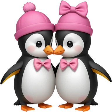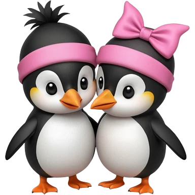 Allora fammi un emoji che rappresenta un pinguino con in testa un fiocco rosa che da la mano a un altro pinguino che in testa ha un cappello di paglia con al centro del cappello una striscia rossa emoji