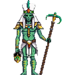 Egyptian god Osiris with green skin, Atef crown, mummified body, holding crook and flail emoji