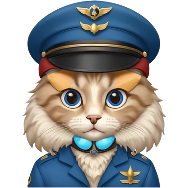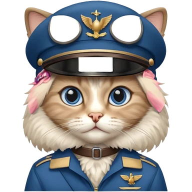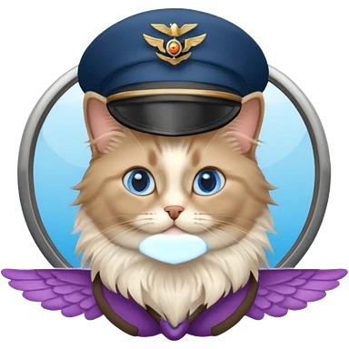Cute ragdoll cat on an airplane. Should sit on top of the plane, cat is way bigger than airplane. Can you make the plane cooler like airbus a380 and the cat a bit happier? I liked the first and last pic out of these. Cat should be ragdoll with white and grey just like these emoji