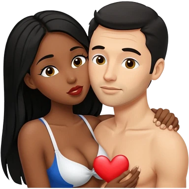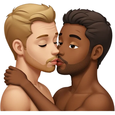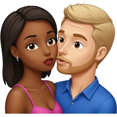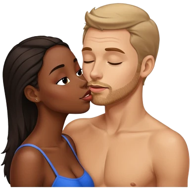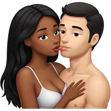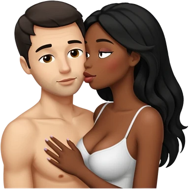 tan white man french kissing his black girlfriend and holding her breasts emoji