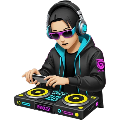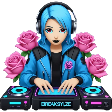un gif texte qui défile "BREAKSTYLEZ TV" change de couleur sur fond noir sur le theme dj emoji