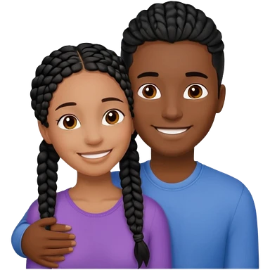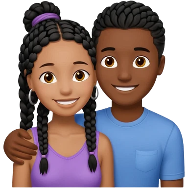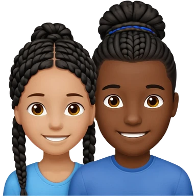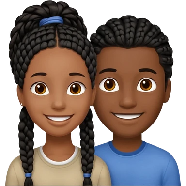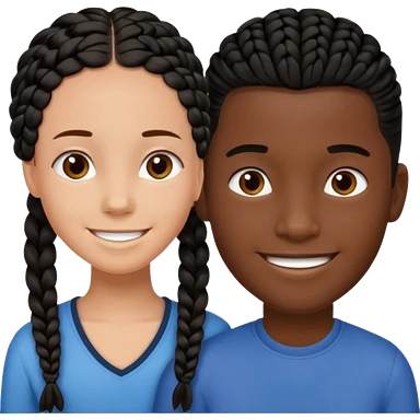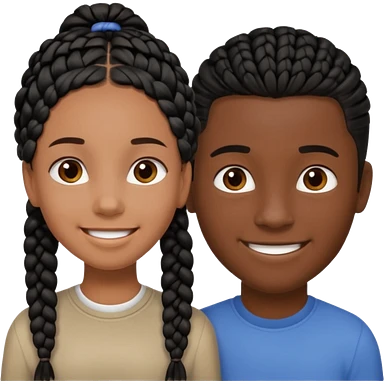 Dark black girl with black braids, smiling, and tan white boy with straight brown hair emoji