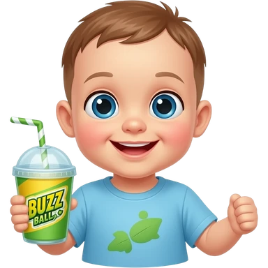 baby with a buzz ball drink emoji
