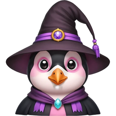 A penguin as a witch Cute and pink penguin emoji
