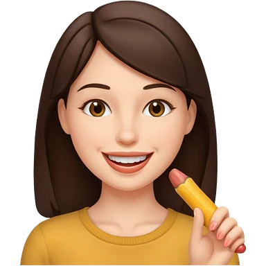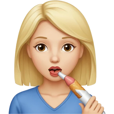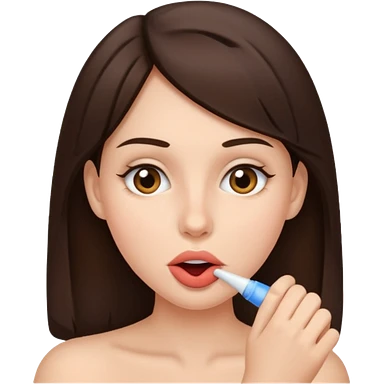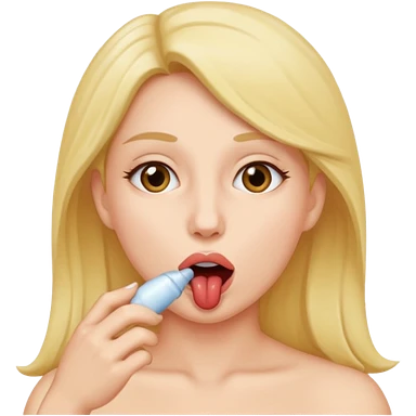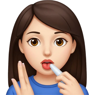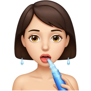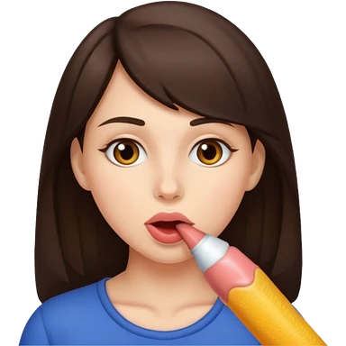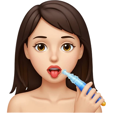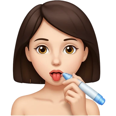 A brunette woman sucking a penis emoji