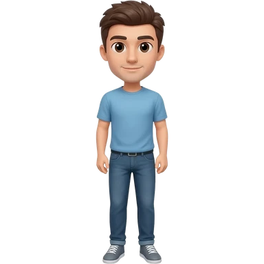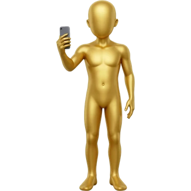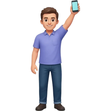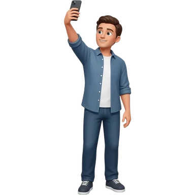Generate a male standing and holding his phone in front and above to make it seem like hes taking a selfie but of his whole body to show to the camer a hes standing emoji