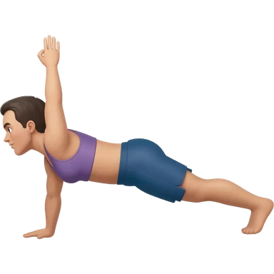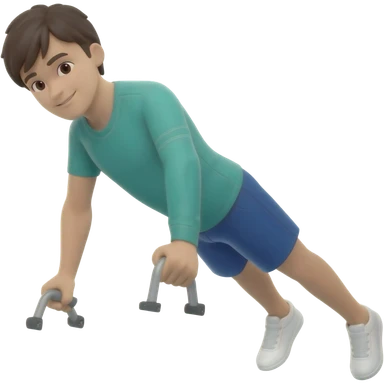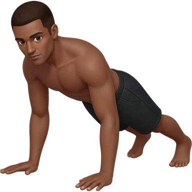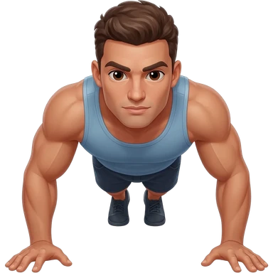man doing push ups at and angle so we can see his face but also rest of body. tan skin. emoji
