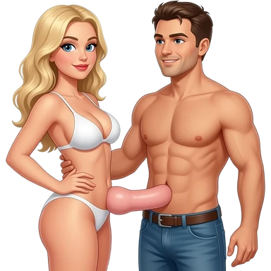 Girl naked blonde hair with big breasts and big ass with dick full body with naked man with big penis fullbody emoji