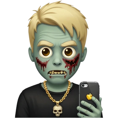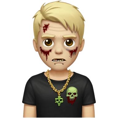 make a iphone emoji who is a zombie man with medium blonde hair with light brown roots, with a black punk shirt and a golden neckless emoji