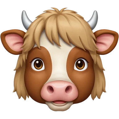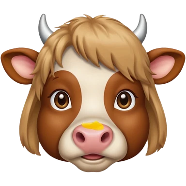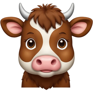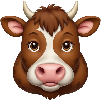 Make a cute brown cow with a brown wig and brown eyes emoji