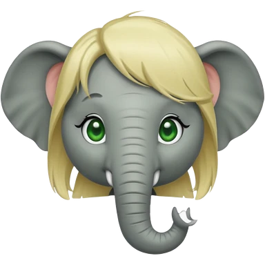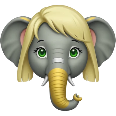 Make and elephant with a dirty blonde wig and green eyes emoji