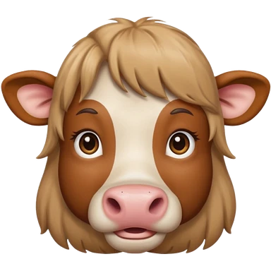 Make a cute brown cow with a light brown wig and brown eyes emoji