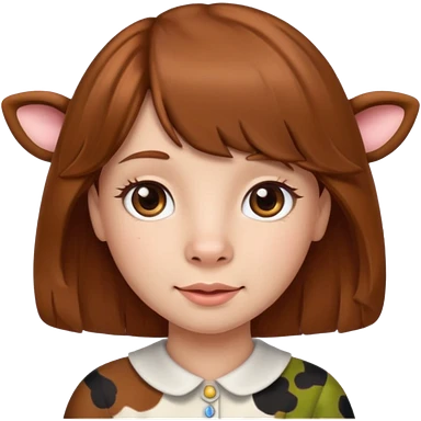 Make a cute girl brown cow with a brown wig and brown eyes emoji